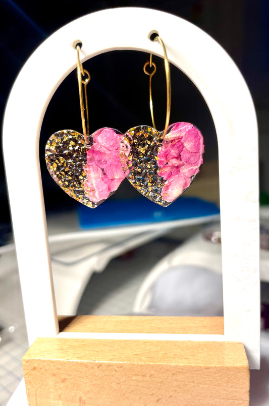 Boucles d’oreilles bouquet de fleurs & cœur de cristal