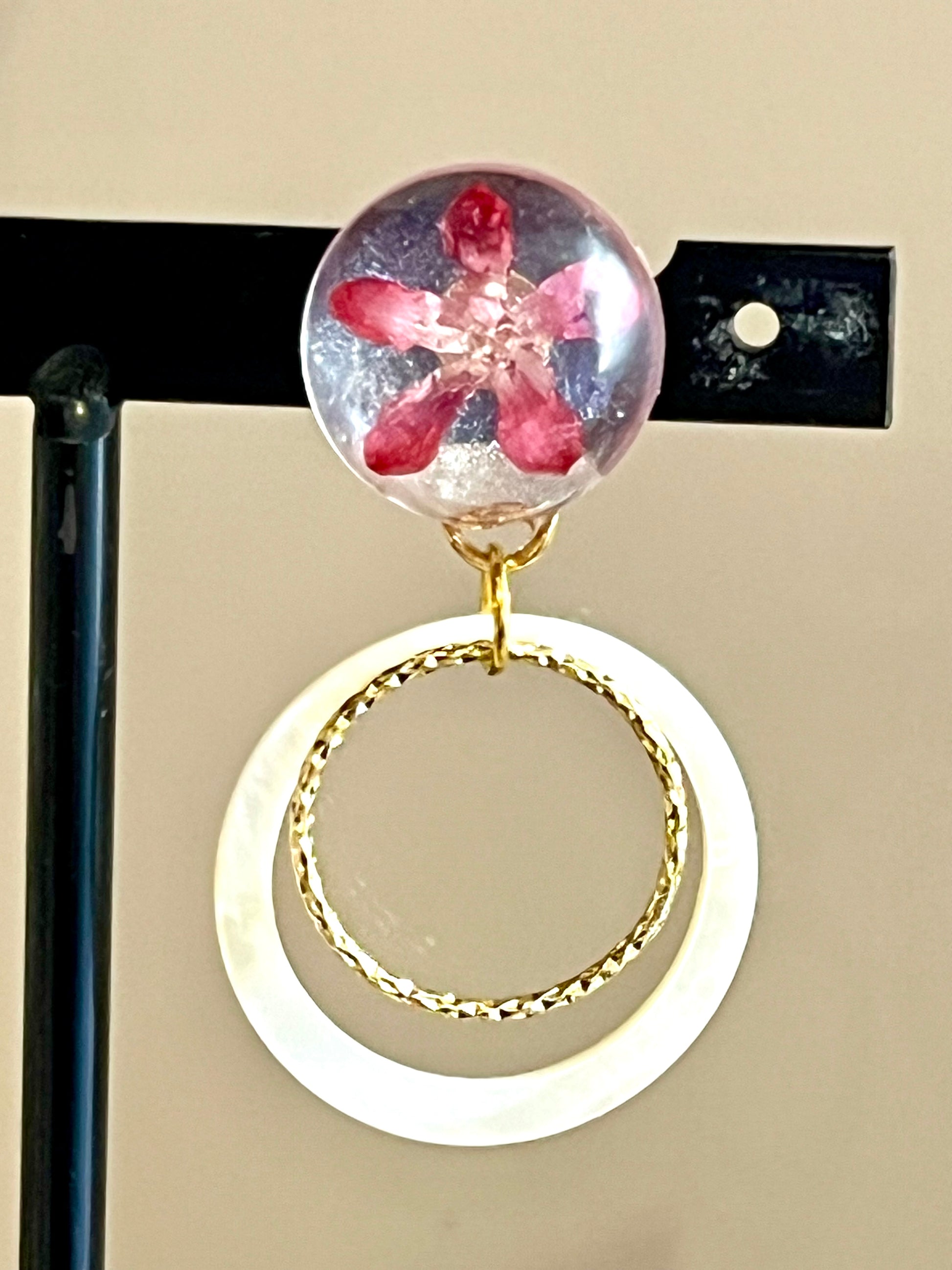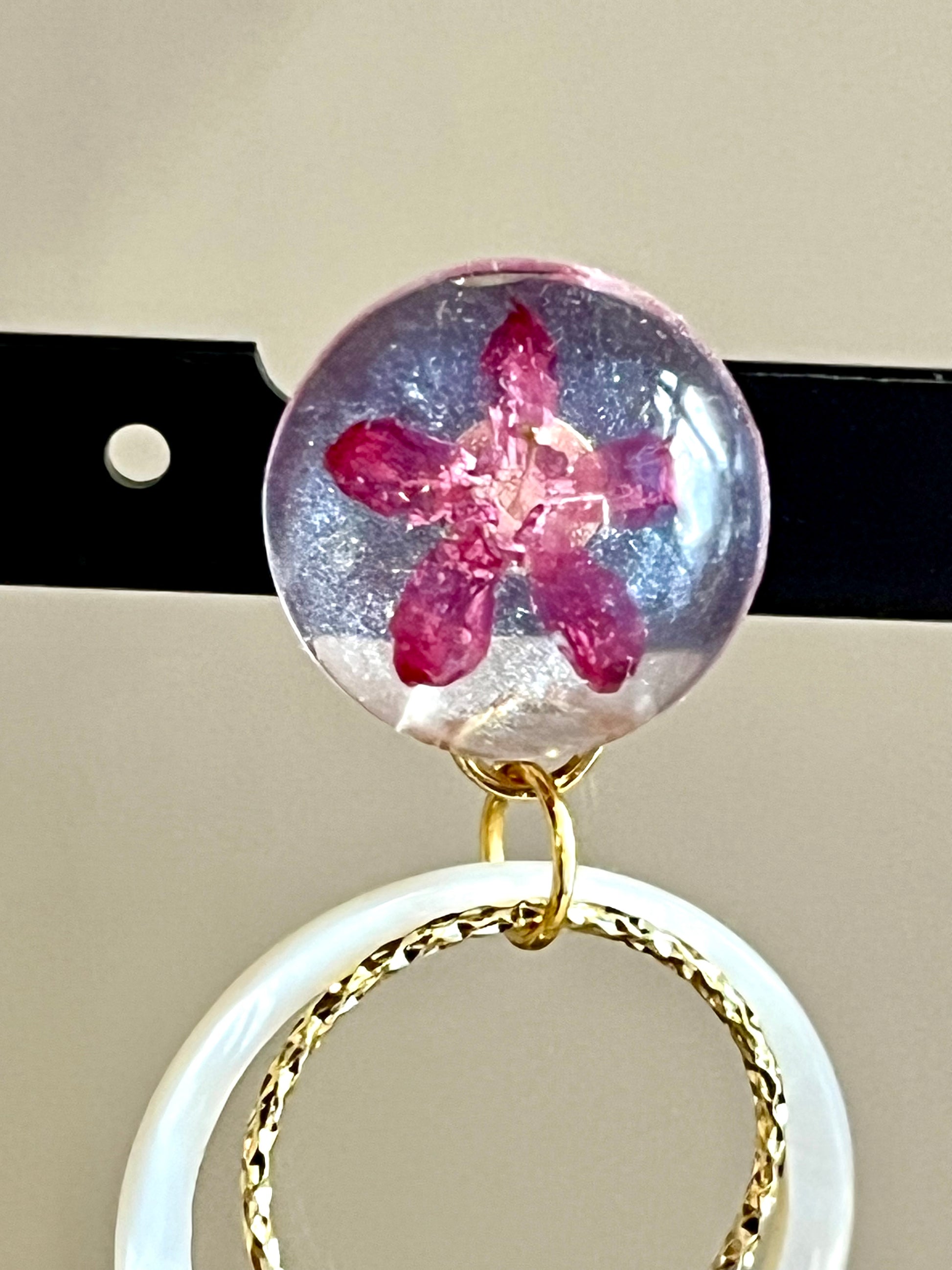 Boucles d’oreilles fleuries résine & anneaux nacrés