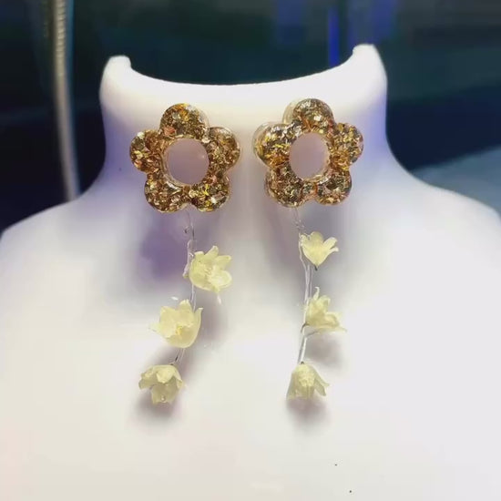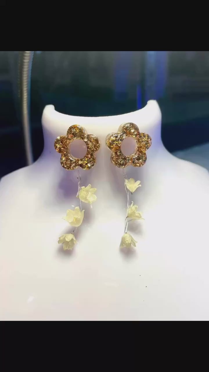 Boucles d’oreilles réalisées avec des clochettes de muguet naturel résinées