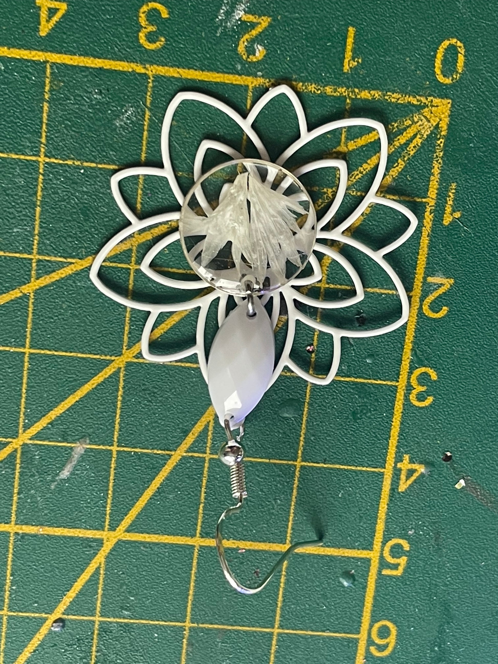 Boucles d’oreilles réalisées avec des pétales naturels de centaurée en inclusion dans la résine