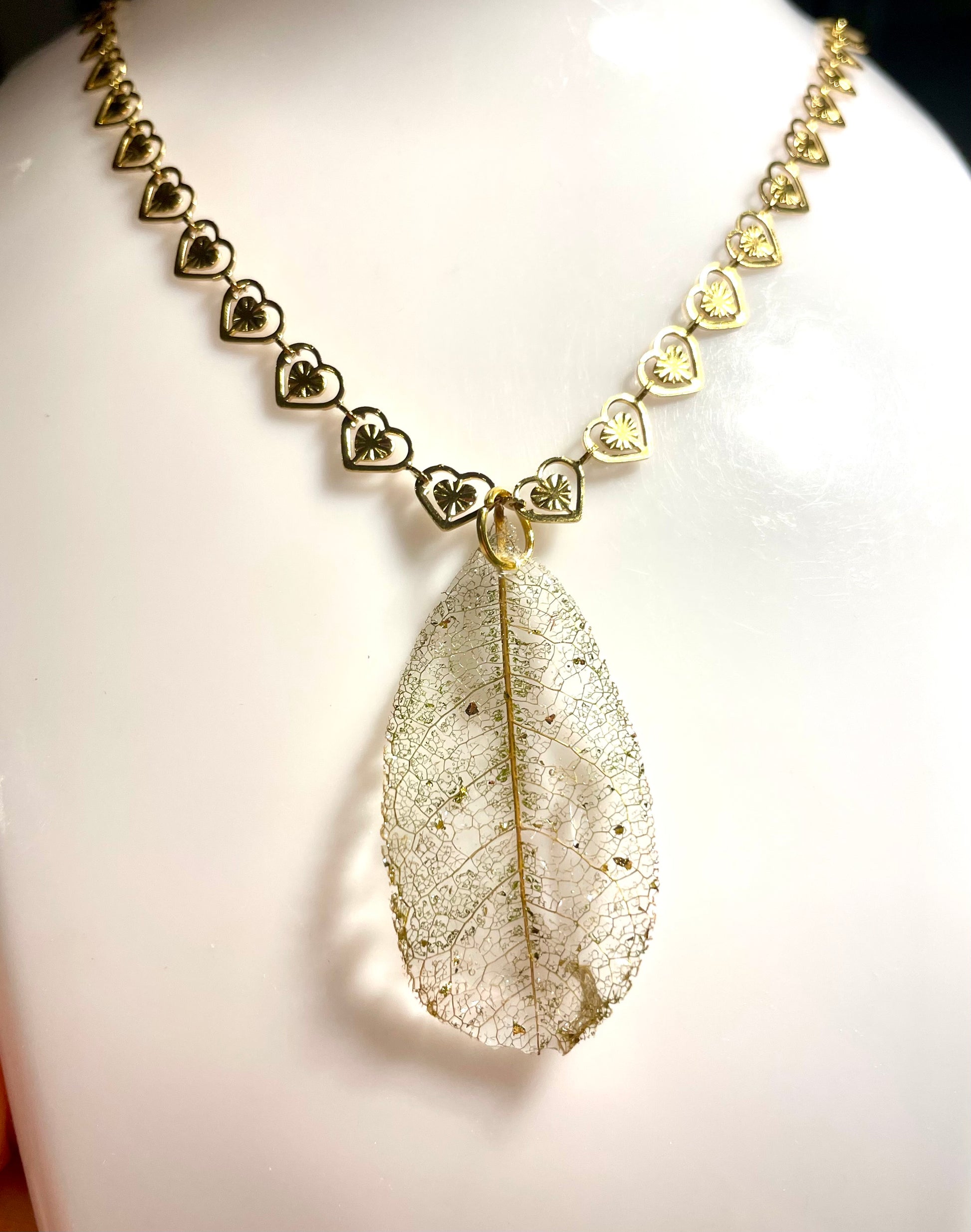 Collier réalisé avec de la dentelle végétale de feuille de magnolia naturelle