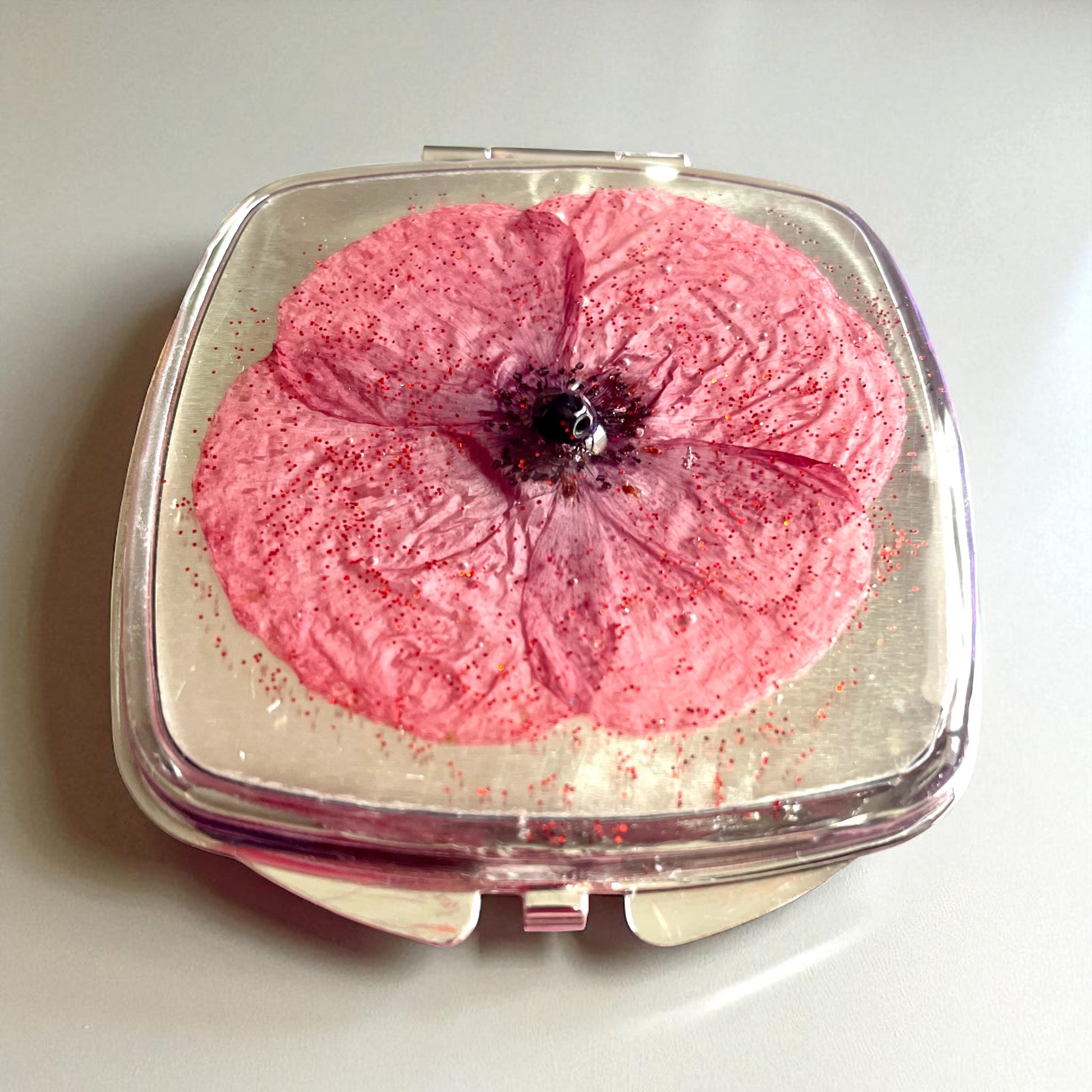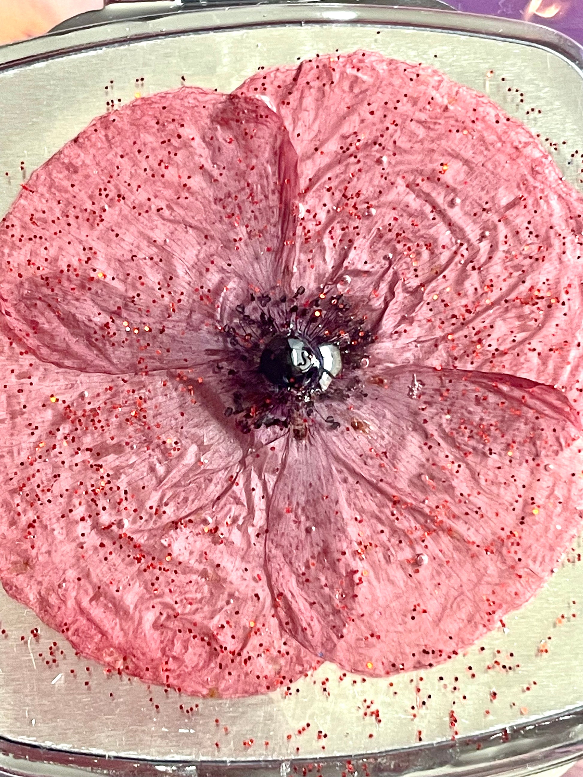 Fleur naturelle de coquelicot en inclusion dans la résine .