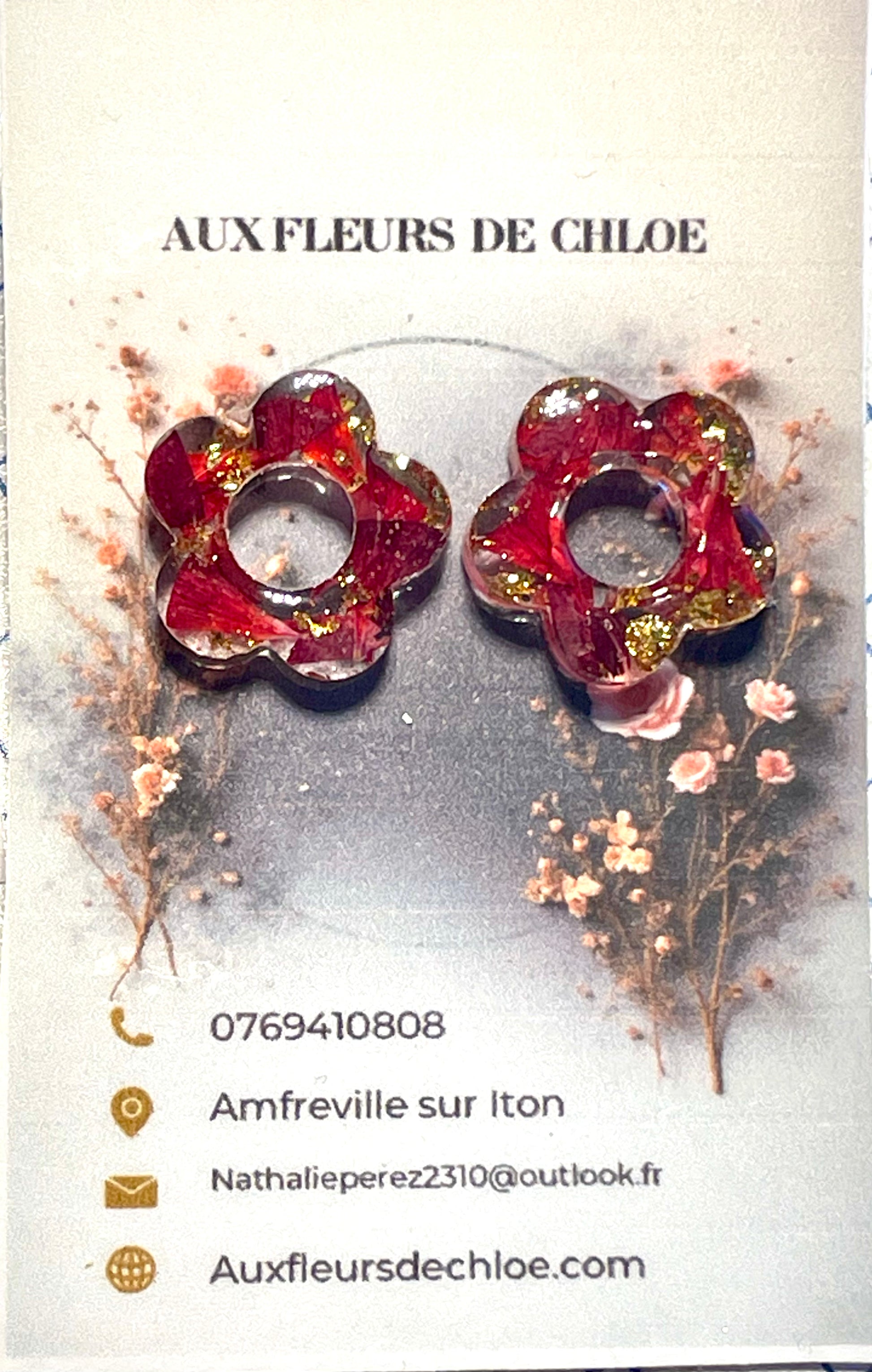 Petites pampilles réalisées en résine avec des pétales naturels de géranium en inclusion