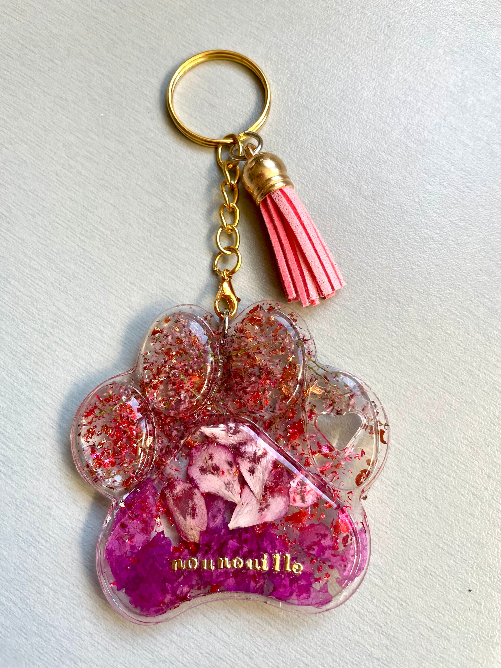 Porte clé réalisé en résine avec des fleurs naturelles en inclusion .