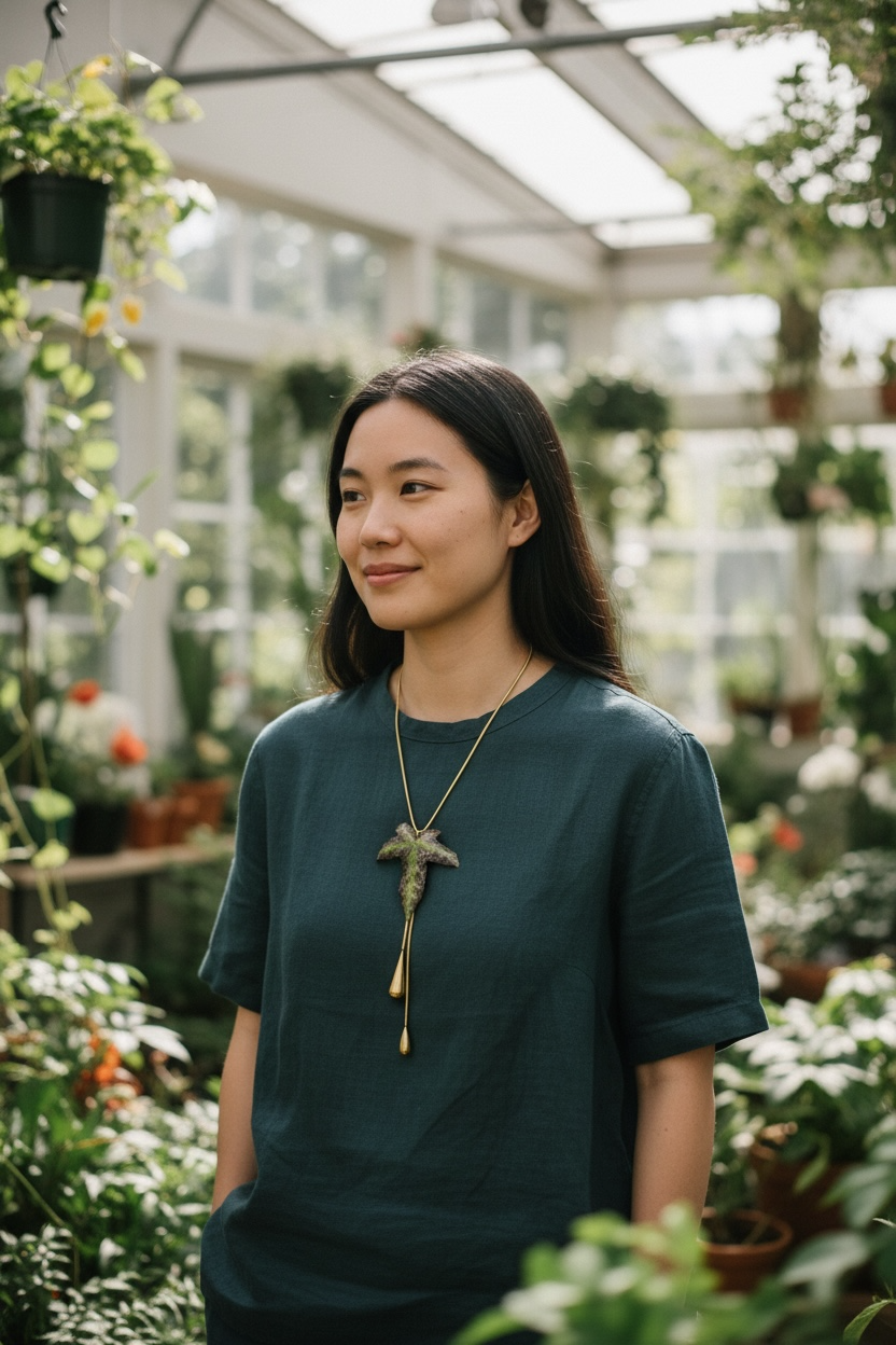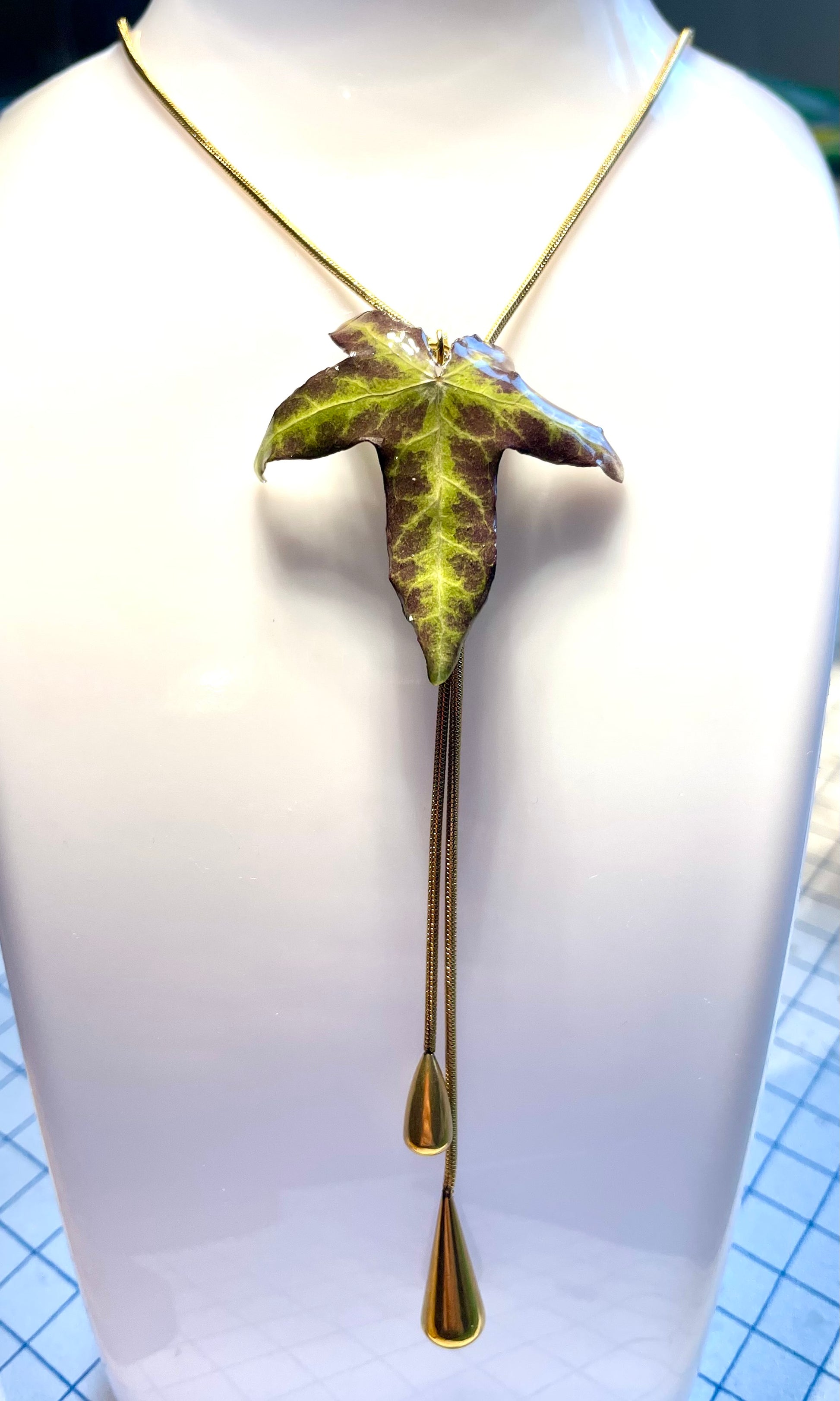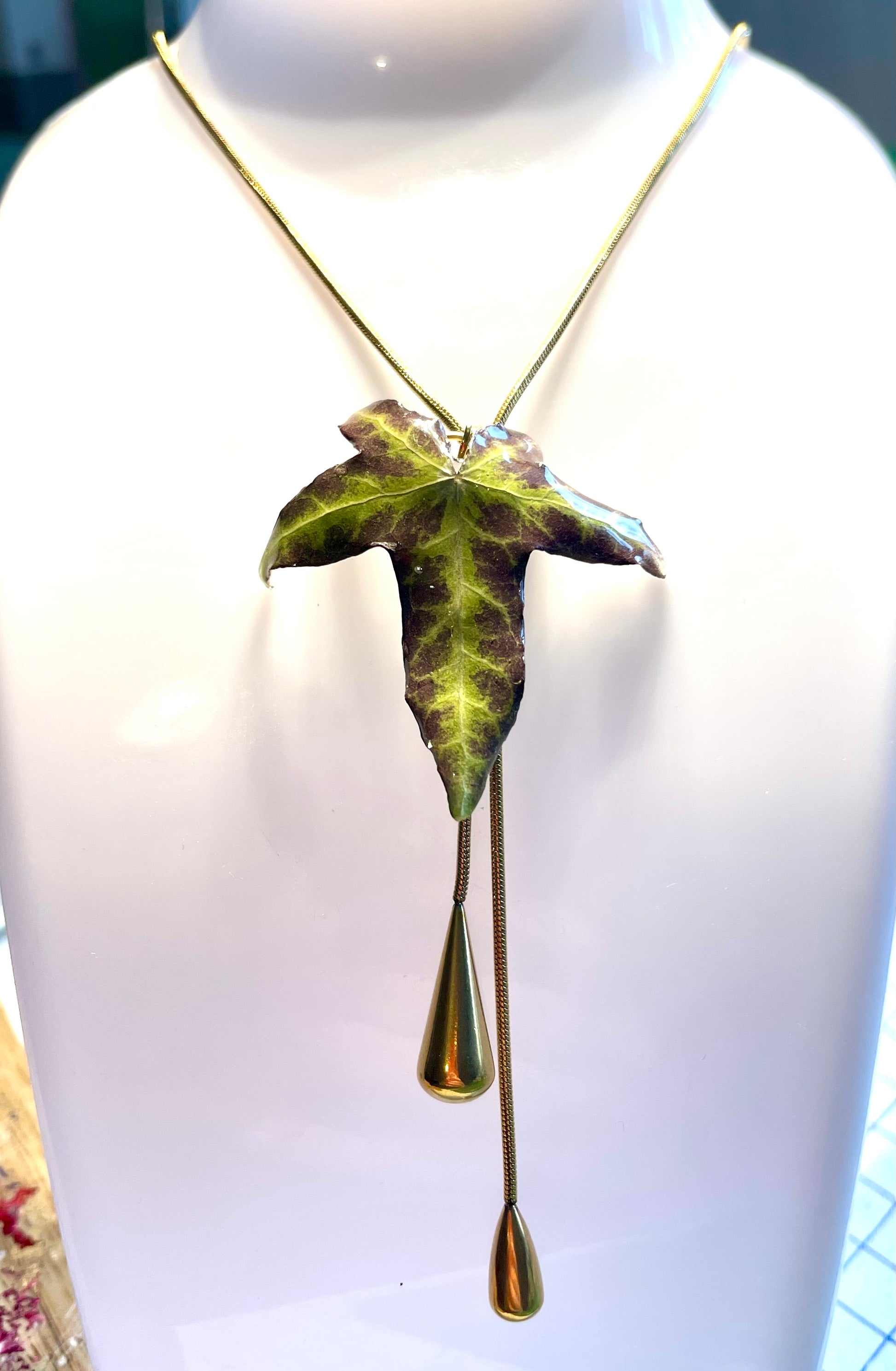 Collier réalisé avec une feuille naturelle de lierre résinée
