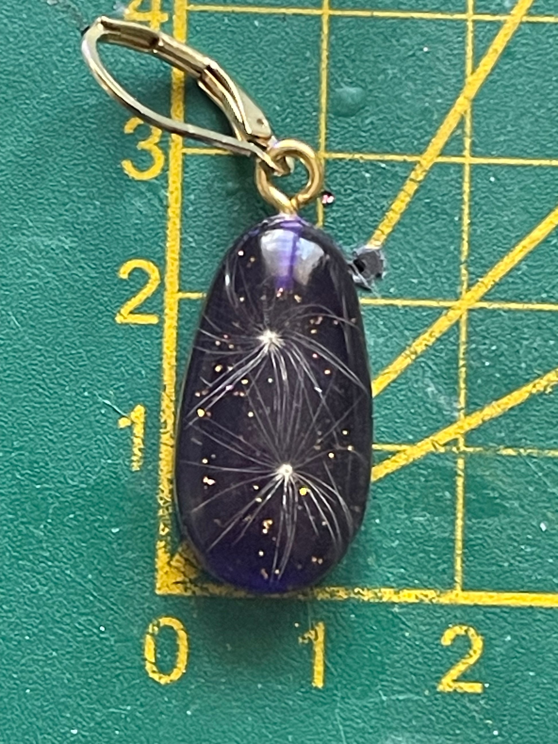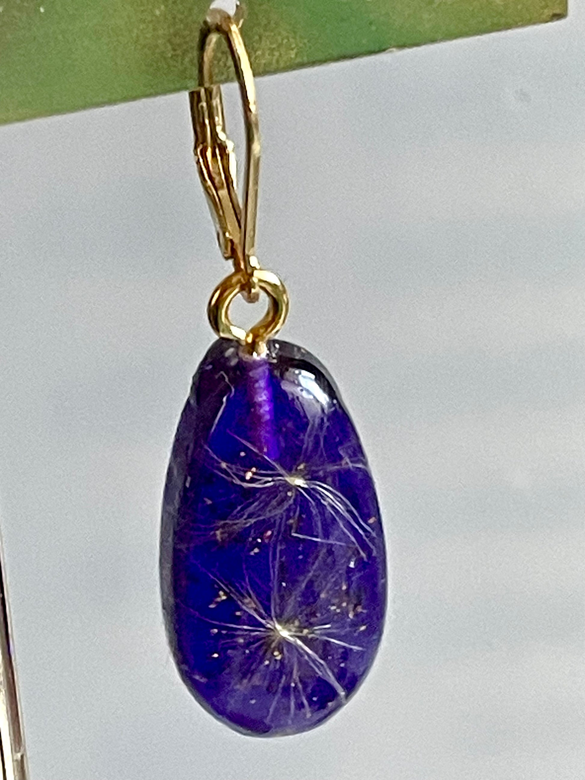 Boucles d’oreilles réalisées en résine avec des aigrettes de pissenlit naturel en inclusion .