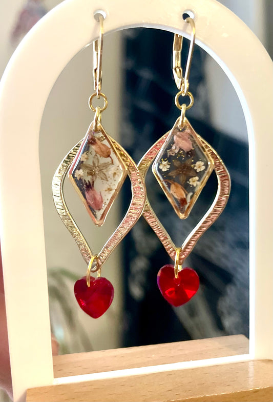 Boucles d’oreilles bouquet de fleurs & cœur de cristal